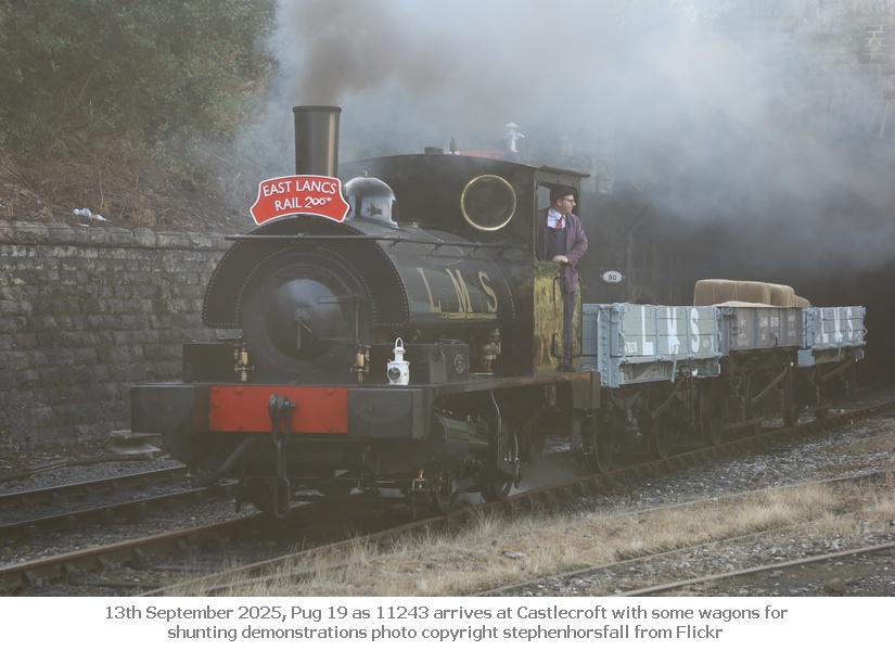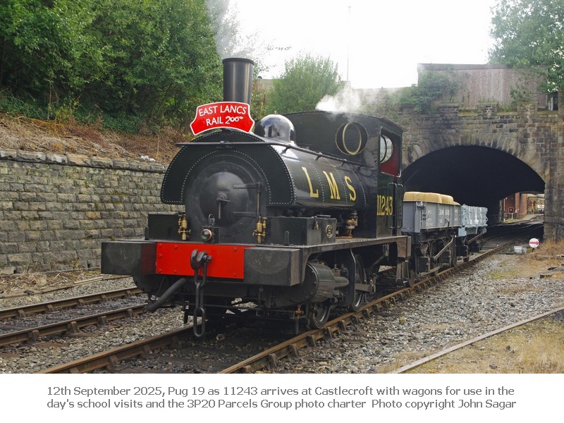 On 13th and 14th September our Pug 19 as 11243 and Saddletank 752 as 11456 operated on the East Lancashire Railway throughout the weekend as part of the Railway200 celebrations with the return of Furness Railway loco 20. Friday 12th September featured a Mayoral visit, a 3P20 Parcels Group photo charter and events for schools.