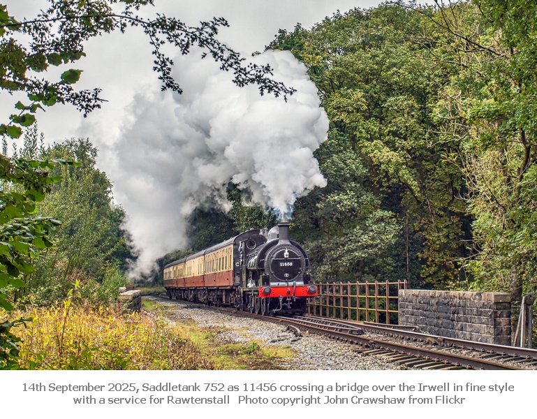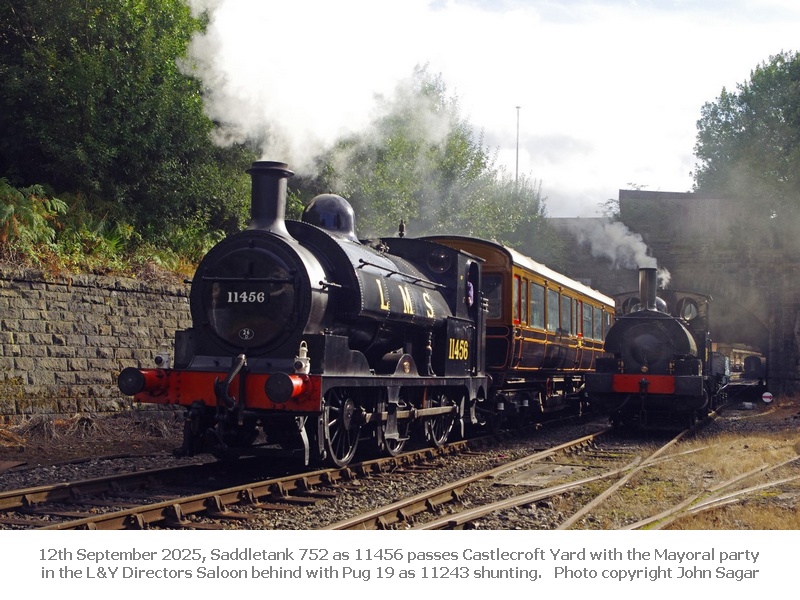 The first week of October saw Saddletank 752 as 11456 used on a ‘Mayor’s Special’ between Bury and Rawtenstall, our Third 6-wheel carriage 1507 on a special on the Worth Valley featuring loco FENCHURCH visiting from the Bluebell.