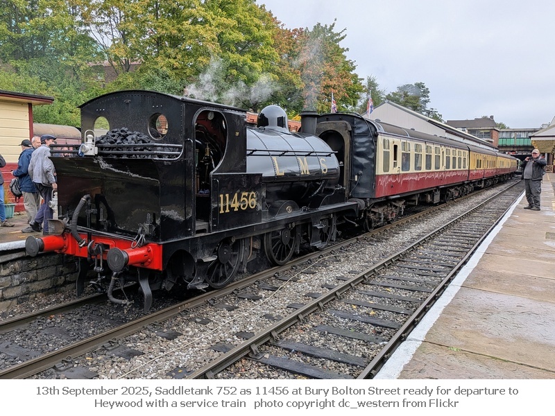 On 22nd March 2025 Saddletank 752 as LMS 11456 operated 3 of the round trip service trains from Bury, this coincided with a visit by members of The Lancashire & Yorkshire Railway Society.
