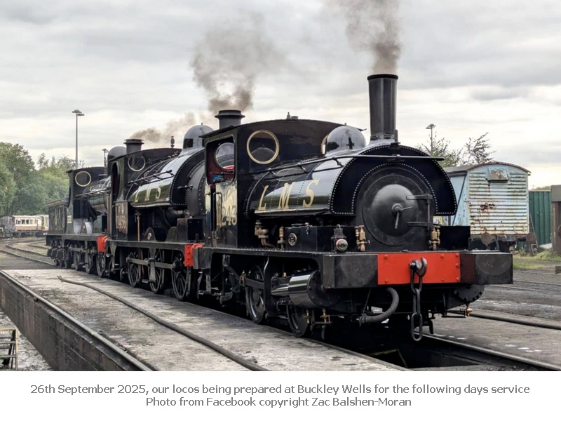 Now in June 2025 and 14th was to feature Saddletank 752 as 11456 double-heading a steam service on the East Lancashire Railway on one of their ‘Lancashire & Yorkshire Running Days’ to operate on selected days in 2025 (full details click here) but unfortunately part of one of the big ends of 11456 became detached before Summerseat was reached, the image from Harry Cain below shows the crew debating what action to take – work gently to Ramsbottom, detach 11456 and work it carefully back to Bury. There is a video on our ‘Video Online’ page on which the motion problem can be heard.